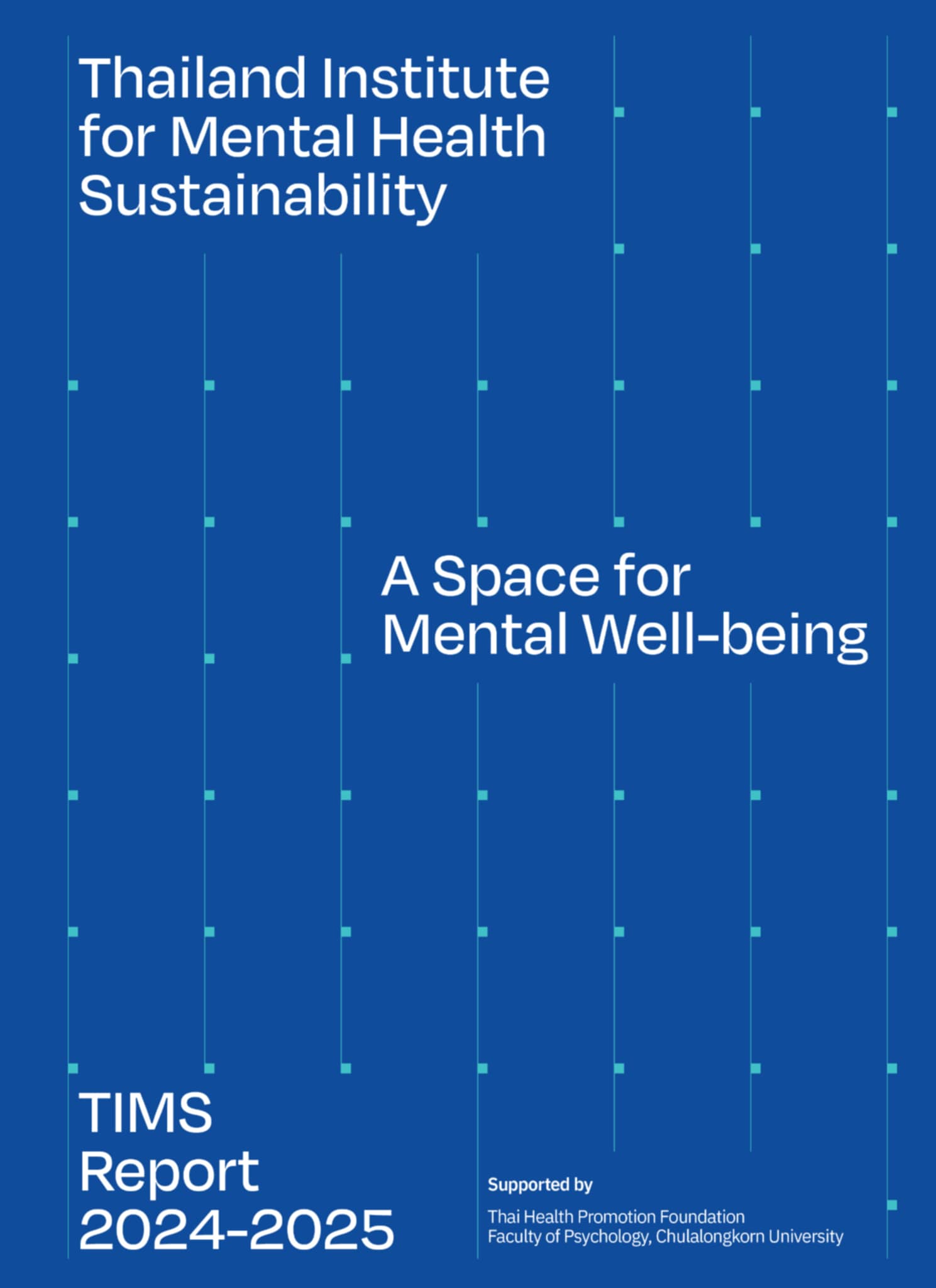 “สถาบันวิชาการเพื่อความยั่งยืนทางสุขภาพจิต” (TIMS) ได้จัดทำรายงาน “TIMS Report 2024-2025 : A Space for Mental Well-being” ฉบับนี้ขึ้นมา เพื่อนำเสนอผลงาน โครงการ กิจกรรม รวมถึงบทสัมภาษณ์ของภาคีเครือข่าย ที่ให้ความสำคัญกับการสร้างเสริมสุขภาวะทางจิตของคนในสังคมบริบทต่าง ๆ โดยหวังให้ทุกท่านมาร่วมเป็นส่วนหนึ่งของการเดินทางสู่การเปลี่ยนแปลงระบบนิเวศสุขภาพจิตในสังคมไทยที่ดียิ่งขึ้นไปด้วยกัน ซึ่งทุกท่านสามารถติดตามผลงานของ TIMS ได้จากรายงานฉบับนี้ และขอฝากเป็นกำลังใจให้พวกเรา ด้วยการติดตามผลงานของ TIMS ในปีต่อ ๆ ไป