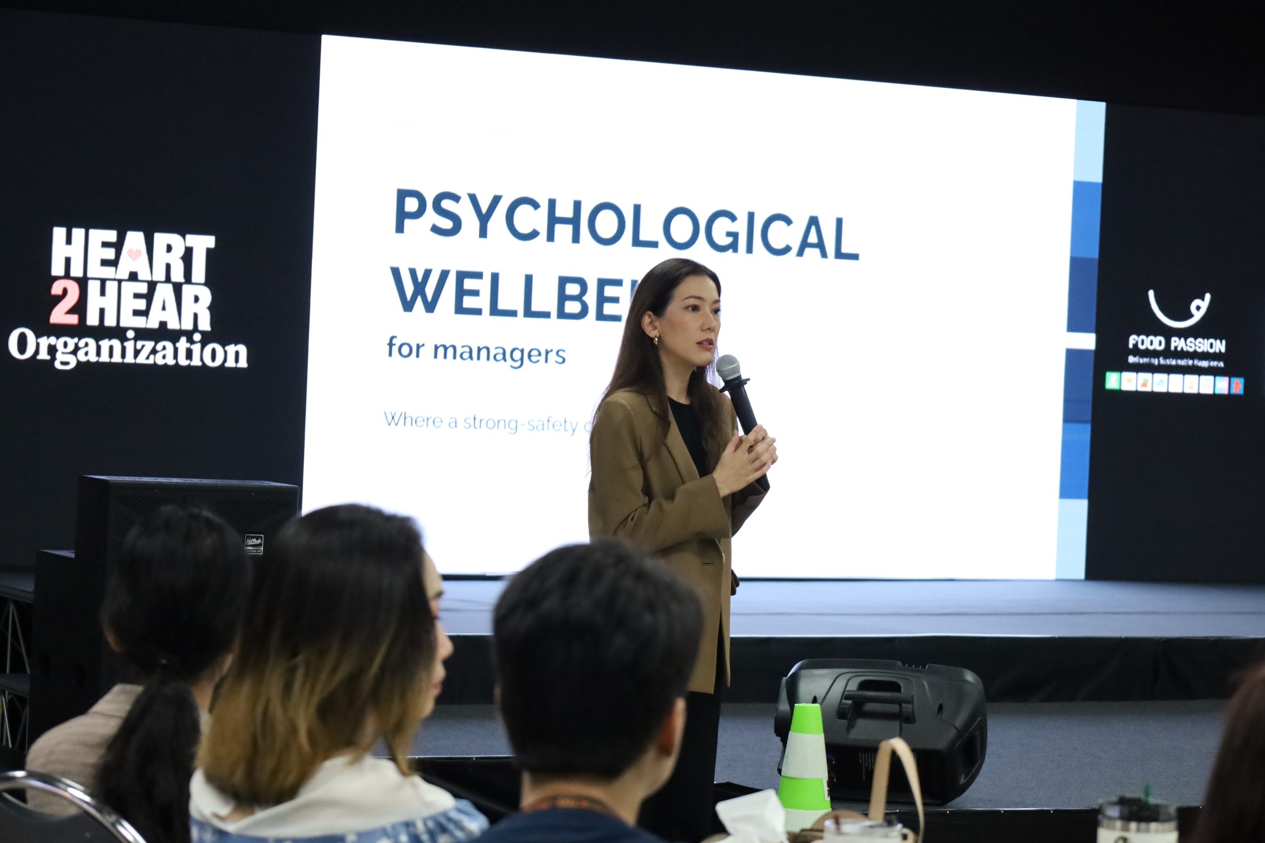 ในการอบรมหลักสูตรผู้นำองค์กรส่งเสริมสุขภาพจิตและนวัตกรรมสุขภาพจิตสำหรับผู้จัดการ เมื่อวันที่ 29 และ 30 พฤษภาคม พ.ศ. 2568 ที่บริษัท ฟู้ดแพชชั่น จำกัด พบว่าภายหลังการอบรม ผู้เข้าร่วมอบรมมีคะแนนเฉลี่ยความรู้เกี่ยวกับการสร้างนโยบายหรือแนวปฏิบัติเพื่อส่งเสริมสุขภาพจิตให้กับคนในองค์กร ความรู้เกี่ยวกับความปลอดภัยเชิงจิตวิทยา (Psychological Safety) ทักษะการฟังอย่างเข้าอกเข้าใจ (Empathetic Listening) และทักษะการให้แสดงข้อคิดเห็นอย่างสร้างสรรค์ (Constructive Feedback) เพิ่มขึ้นมากกว่าก่อนการอบรมในทุกด้าน โดยคะแนนเฉลี่ยความรู้และทักษะทั้งสามด้านของการอบรมวันที่ 29 พฤษภาคม พ.ศ. 2568 ก่อนการอบรมอยู่ที่ 2.95 จาก 5 คิดเป็นร้อยละ 59.00 และคะแนนเฉลี่ยความรู้หลังอบรมคือ 4.39 จาก 5 คิดเป็นร้อยละ 87.80 ส่วนการอบรมวันที่ 30 พฤษภาคม พ.ศ. 2568 มีคะแนนเฉลี่ยความรู้และทักษะ ก่อนการอบรมอยู่ที่ 3.02 จาก 5 คิดเป็นร้อยละ 60.40 และคะแนนเฉลี่ยความรู้หลังอบรมคือ 4.59 จาก 5 คิดเป็นร้อยละ 91.80 ส่วนความพึงพอใจในการอบรมทั้งในด้านเนื้อหาของหลักสูตร ด้านวิทยากร และด้านวัสดุอุปกรณ์ประกอบการสอนของการอบรมวันที่ 29 พฤษภาคม พ.ศ. 2568 มีค่าเฉลี่ยความพึงพอใจอยู่ที่ 4.36 จาก 5 คิดเป็นร้อยละ 87.20 ส่วนวันที่ 30 พฤษภาคม พ.ศ. 2568 มีค่าเฉลี่ยความพึงพอใจอยู่ที่ 4.61 จาก 5 คิดเป็นร้อยละ 92.20 ซึ่งผ่านเกณฑ์ความพึงพอใจที่ตั้งไว้ที่ร้อยละ 70