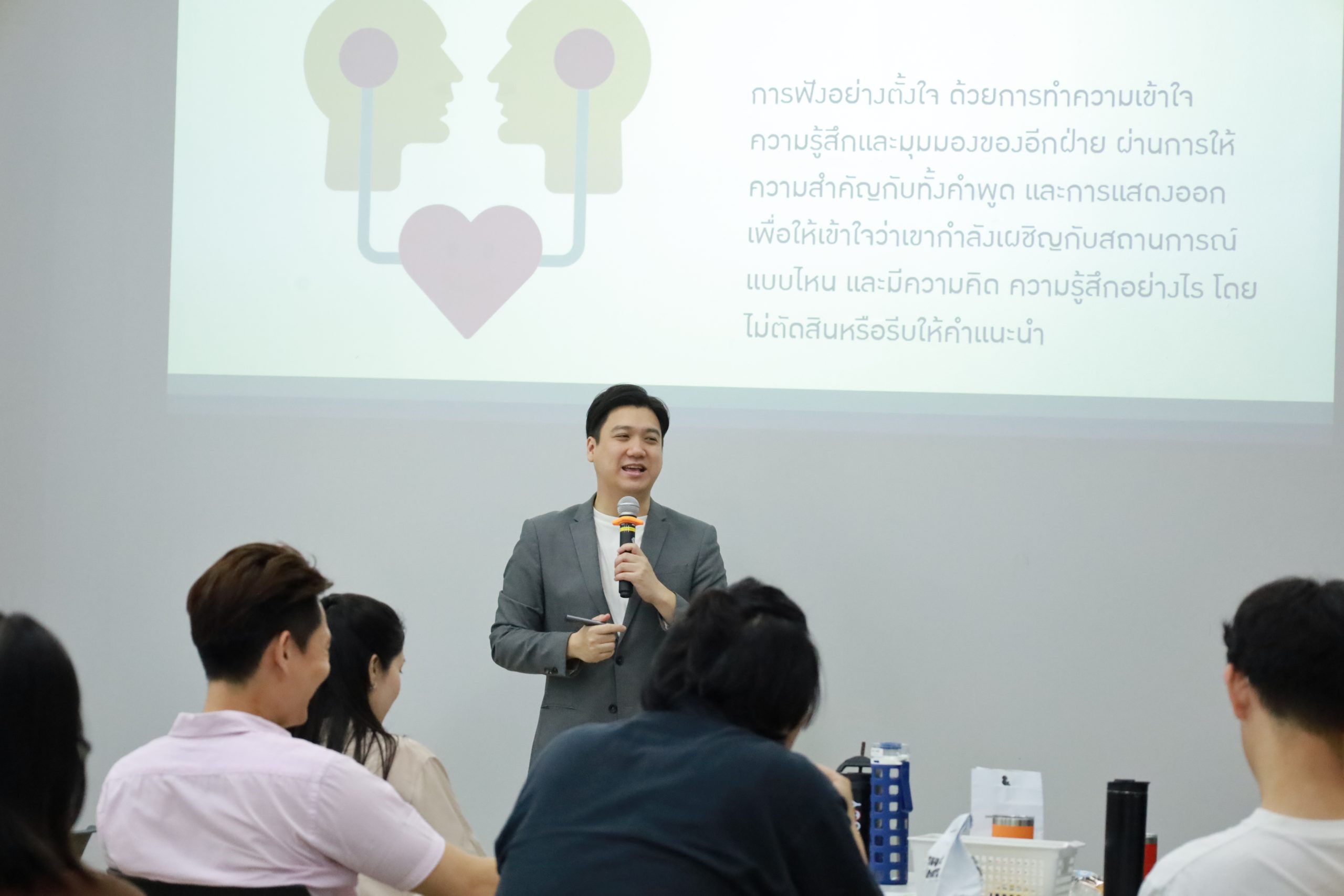 หลักสูตรอบรมประกอบไปด้วยกิจกรรมสำหรับการประยุกต์ใช้ในองค์กร ได้แก่ การแลกเปลี่ยนมุมมองเกี่ยวกับคุณลักษณะของผู้ฟังที่ดี ทำความรู้จักทักษะการฟังอย่างเห็นอกเห็นใจ (Empathetic Listening), การใช้ OARS Models ในการสื่อสาร โดยการฝึกตั้งคำถามปลายเปิด (Open-questions), การฝึกสังเกต การขอบคุณสิ่งรอบตัว และการชื่นชมพนักงาน (Affirmation), การรับฟังและสะท้อนเพื่อสร้างความเข้าใจ (Reflection), การสรุปประเด็นจากการฟังเรื่องราว (Summarizing), รวมไปถึงการรู้ทันกับดัก เพื่อฟังอย่างเข้าใจ และการวางแผนการสื่อสารเชิงบวกกับพนักงานตามสถานการณ์ที่ได้รับ เพื่อให้ผู้นำองค์กรสามารถนำทักษะความรู้ไปปรับใช้กับการสื่อสารในองค์กร